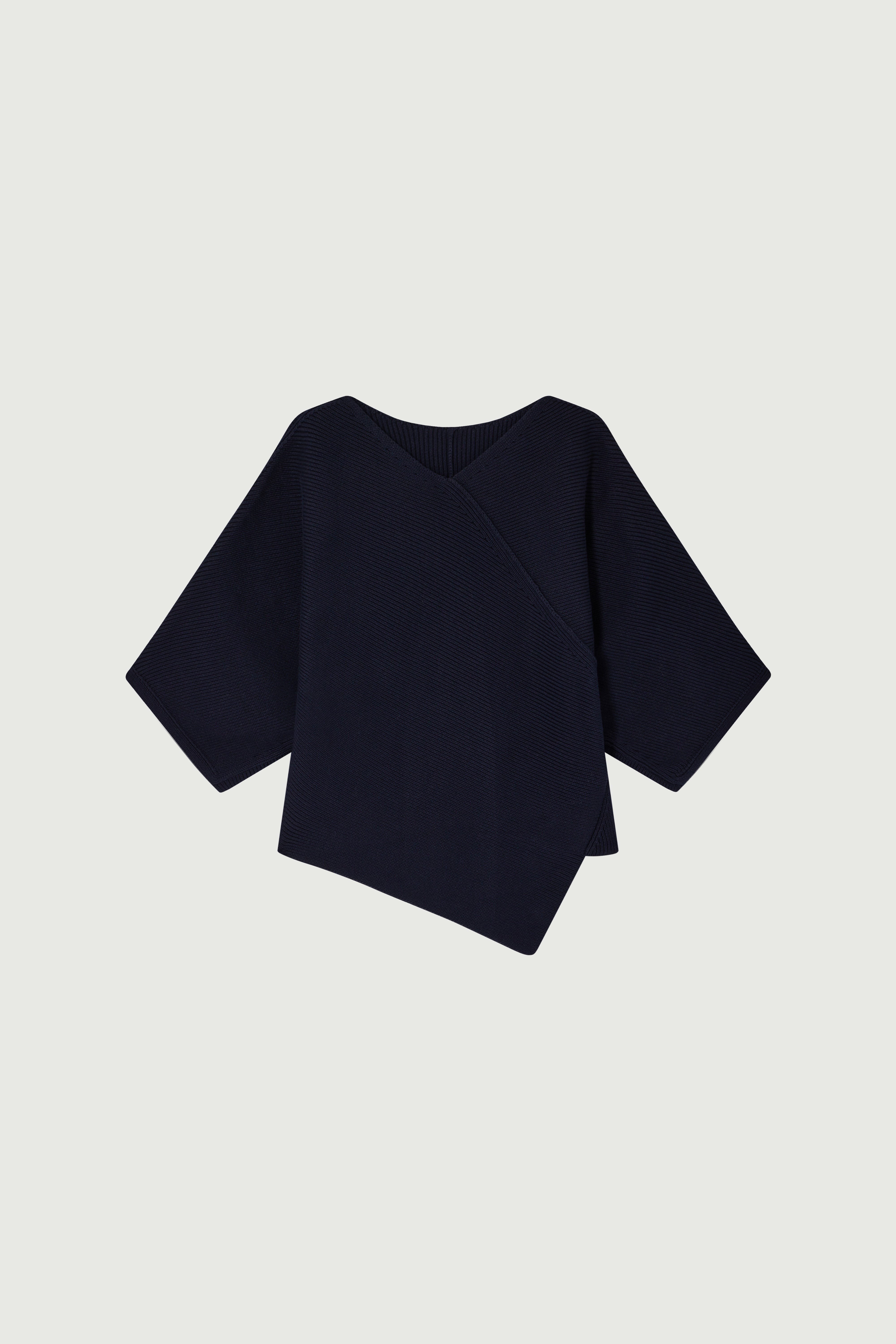 - Short asymmetrical cut- Short sleeves- V-neckline- Medium gauge asymmetric front- Cotton